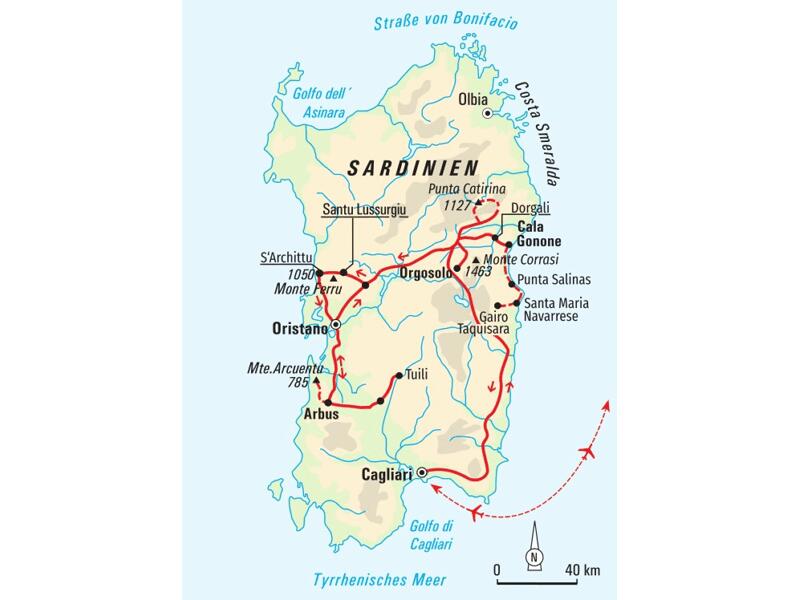 Ankunft in Sardinien. Am Flughafen werden wir von unserer Reiseleitung empfangen und zur Unterkunft in Cala Gonone gebracht.