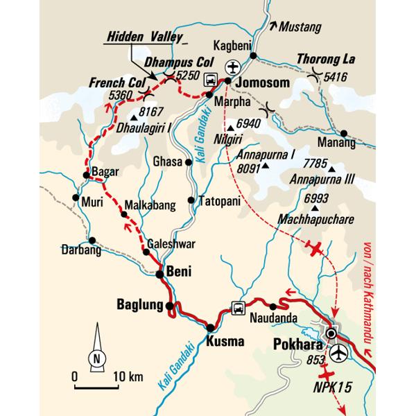 für den Tourenabschnitt French Col - Dhampus Pass - Marpha und die Besteigung des Dhampus Peak