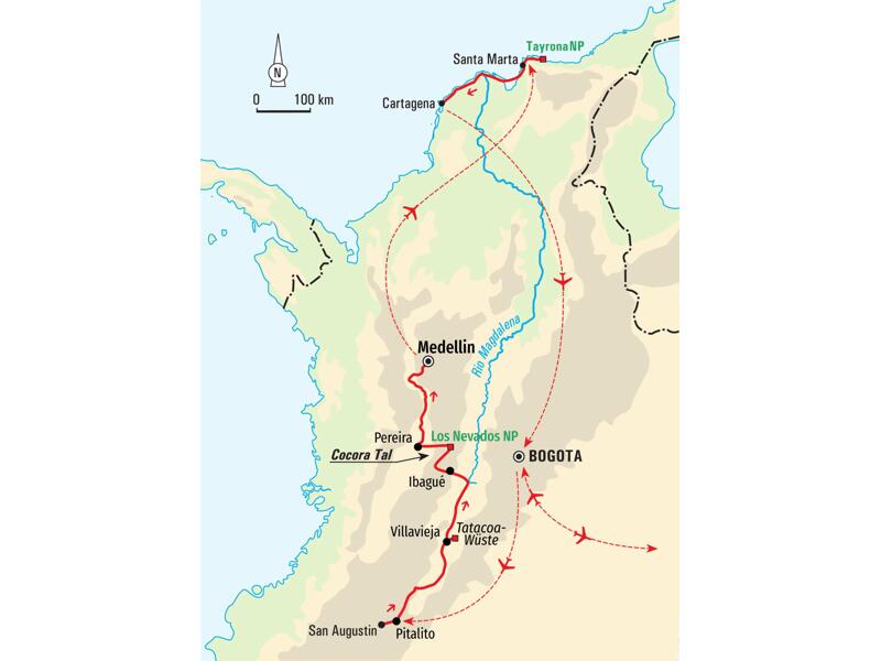 Der Fokus dieser Reise liegt auf Wanderungen in der abwechslungsreichen Natur Kolumbiens, sowohl in der Mitte des Landes rund um Bogotá als auch im Norden an der Karibikküste. Dabei erkunden wir die Hauptstadt Bogotá und die umliegende Region mit kleinen kolonialen Städten, der Kaffeezone, archäologischen Stätten und landschaftlichen Highlights wie der Tatacoa-Wüste. An der Karibikküste entdecken wir die Traumstrände im Tayrona-Nationalpark und die bunte Kolonialstadt Cartagena.