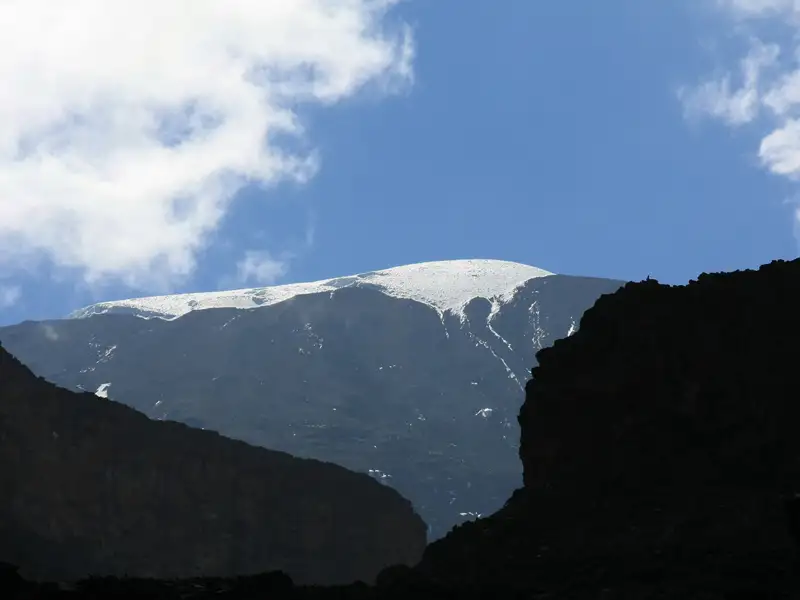 Wir starten zeitig und wandern stetig berauf. Die Landschaft ist karg und steinig, hier wachsen nur noch struppige Büsche. Unser Ziel ist die School Hütte (4.715 m), die wir über einen steilen Hang erreichen. Hier oben ist es zugig und kalt. Nicht vergessen, die Thermoskannen mit warmen Getränken zu füllen! Das Abendessen wird heute früh serviert, der ein oder andere muss sich bestimmt ein bisschen zwingen, etwas zu essen. Wir schlüpfen früh in die warmen Schlafsäcke, denn wir stehen bereits vor Mitternacht wieder auf, um die letzte Etappe in Angriff zu nehmen.