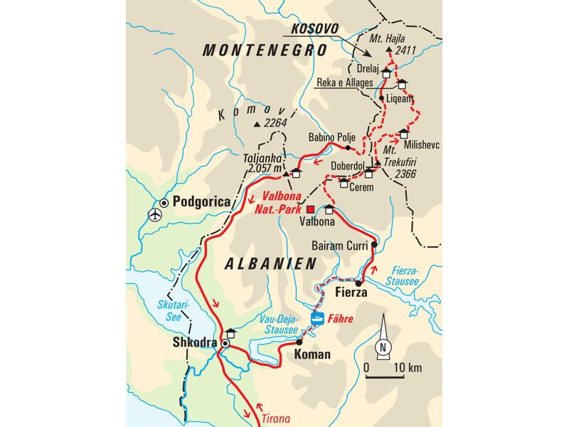 Der Fokus dieser Reise liegt auf dem Trekking im Dreiländereck Montenegro, Albanien und Kosovo des Balkangebirges. Der Großteil der Route folgt dem populären Fernwanderweg "Peaks of the Balkans" und garantiert eindrucksvolle Aussichten von drei Gipfeln. Dabei bleibt viel Zeit für Begegnungen und Einblicke in die Kultur, in die Geschichte und die Sitten dieser Region.