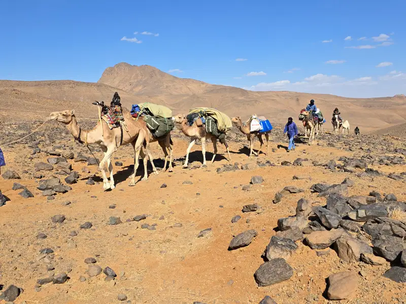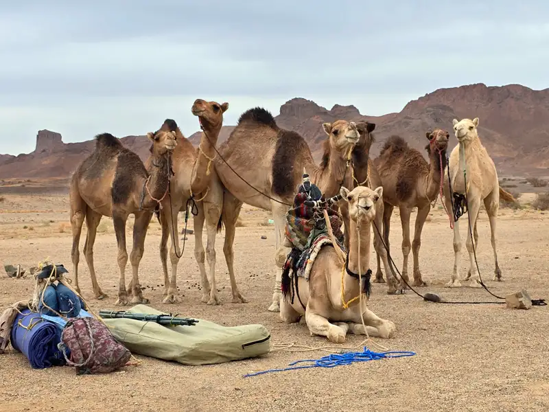 Wir empfehlen für diese Reise eine flexible Reisetasche (Variante mit Rollen sind in Ordnung). Ein Koffer/Trolley ist nicht geeignet. Während des Trekkings wird das Gepäck von Lastkamelen transportiert und darf für diesen Zeitraum ein Gewicht von 14 kg pro Person nicht überschreiten. Es ist entsprechend ratsam, nur das Nötigste mitzunehmen. Das restliche Gepäck, das während des Trekkings nicht benötigt wird, kann in eine separate Tasche gepackt und in Tamanrasset bei unserer Partneragentur deponiert werden. Es steht nach der Rückkehr vom Trekking wieder zur Verfügung. Für die Wanderungen benötigen Sie nur ihren Tagesrucksack.