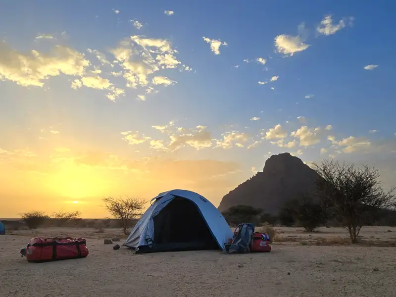 Zu Beginn der Reise erfolgt eine Einweisung in den Auf- und Abbau der Zelte. Im restlichen Verlauf sind die Teilnehmer dafür selbst verantwortlich. Unterstützung durch die Reiseleitung und die Begleitmannschaft steht aber jederzeit zur Verfügung.