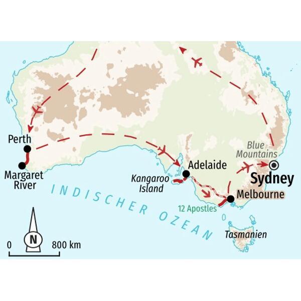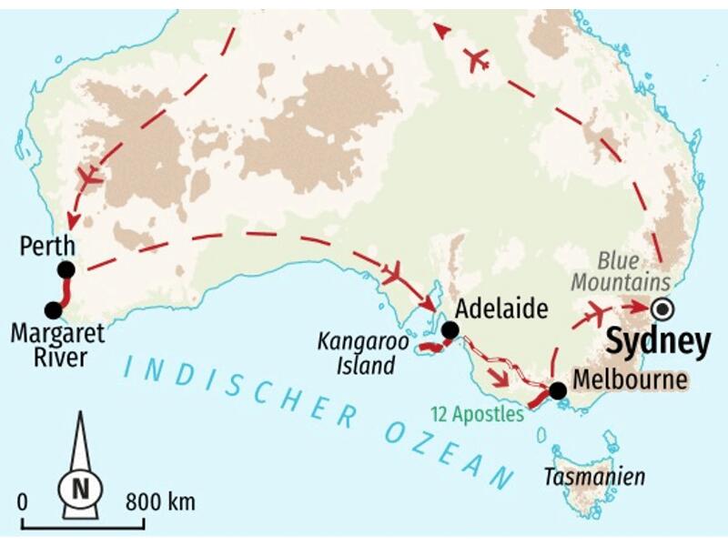 Reise-Nr. St 78AAWanderreise entlang der Südküste Australiens mit Kangaroo Island und den Blue Mountains