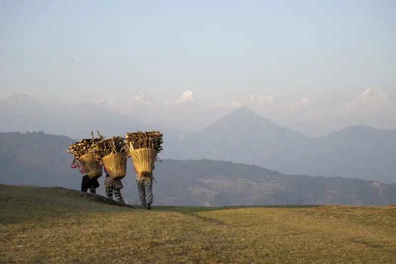 Mit Allradfahrzeugen werden wir über holprige Pisten aus dem Kathmandu-Tal zum Ausgangspunkt unseres Trekkings gebracht. Sobald wir das Stadtgebiet hinter uns gelassen haben, tauchen wir in das ländliche Nepal ein. Kleine Siedlungen mit einfachen Häuschen, Menschen die auf ihren Feldern arbeiten und Händler, die oft mit abenteuerlich beladenen Fahrrädern oder Ochsengespannen unterwegs sind, prägen das Bild. Bevor wir auf unseren Trek in der Helambu-Region starten, wird unser Gepäck auf Träger verteilt. Nach dem Mittagessen wandern wir auf guten Wegen teils steil bergauf bis zum Dorf Chipling auf ca. 2.150 m Höhe. In unserem Gästehaus erwartet uns ein traditionell zubereitetes Abendessen.