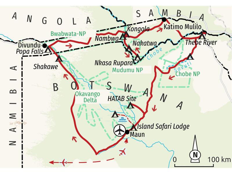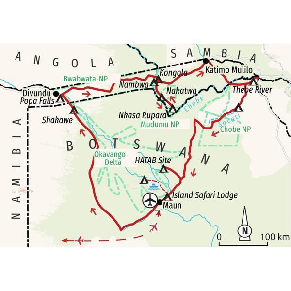 Naturnahe Wander- und Safarireise durch Botswana und den Caprivistreifen Namibias durch bekannte und weniger bekannte Nationalparks mit exzellenten Möglichkeiten zur Tierbeobachtung zu Fuß, mit dem Boot oder aus dem Geländewagen heraus.