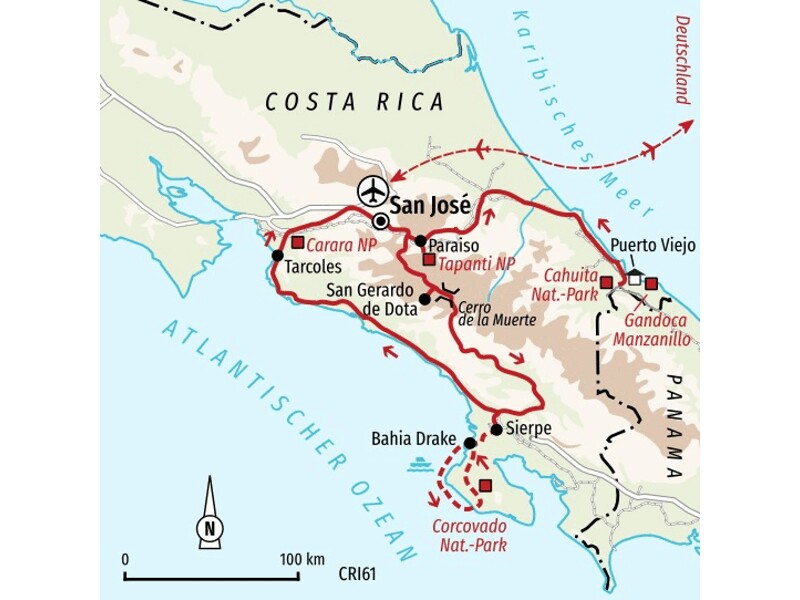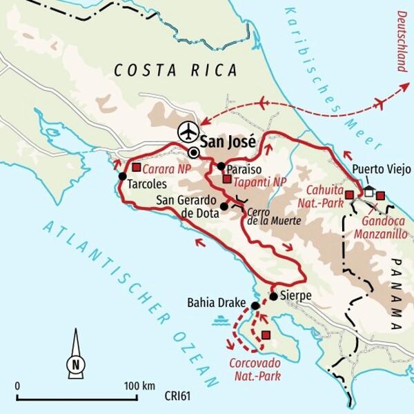 Reise-Nr. St 63ABSelbstfahrer-Wanderreise im Süden des Landes mit Aufenthalt an der pazifischen und der karibischen Küste