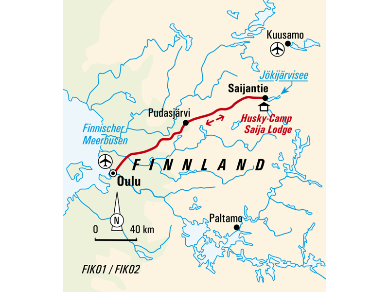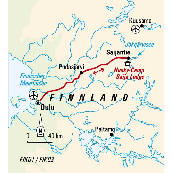- Unterbringung: Saija Lodge in Taivalkoski (F, M, A)