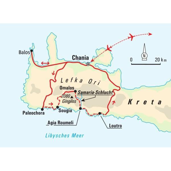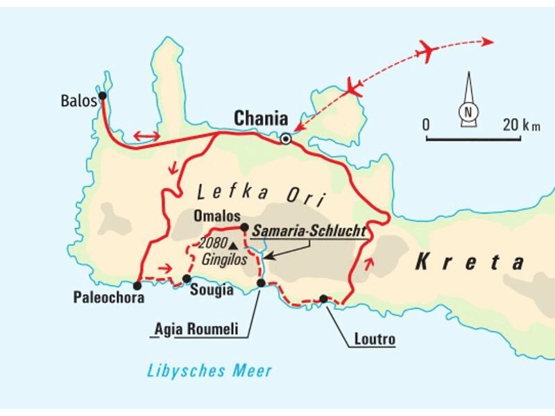 Voraussetzung für diese Reise sind Kondition, Ausdauer und Trittsicherheit für Wanderungen mit bis zu 7 Std. Gehzeit auf gerölligen, steinigen Pfaden und in teilweise weglosem Gelände. Für die Besteigung des Gingilos ist Schwindelfreiheit erforderlich. Die Wanderungen durch die Samaria- und vor allem die Aradena-Schlucht beinhalten mehrere leichte Kletterpassagen über Blockgestein und Felsen - einmal über eine kleine Leiter, und auch im Gipfelbereich des Gingilos müssen wir gelegentlich die Hände zu Hilfe nehmen. Gehzeiten können sich durch ungünstige Witterungsbedingungen und je nach Kondition der Gruppe verlängern. Die Wanderungen werden regelmäßig durch erholsame Pausen unterbrochen. Einzelne Tagesetappen können ausgelassen werden.