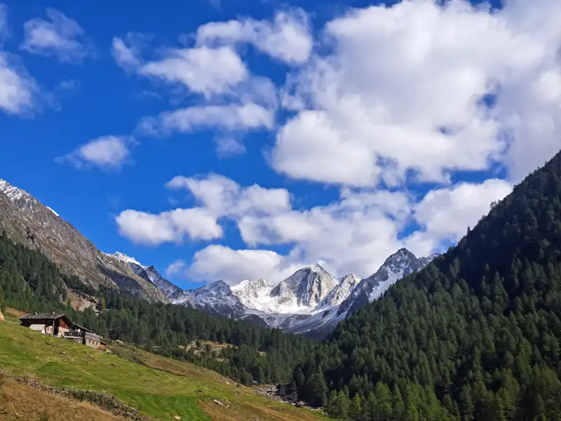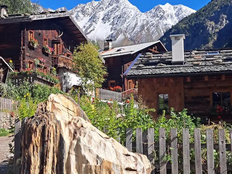 Heute genießen wir eine abwechslungsreiche Wanderung, die uns zunächst über das Schnalstal führt, bevor wir bald ins idyllische Pfossental eintauchen. Umgeben von steilen Bergflanken haben wir beim Gasthof Jägerrast die Hälfte der heutigen Etappe hinter uns und gönnen uns ein Mittagspause. Wir wandern weiter entlang des Pfossentalbachs und erreichen am Nachmittag den Eishof, unsere heutige Unterkunft. Hier scheint die Zeit stillzustehen und wir spüren die Geschichte der hochgelegenen Almen, die einst nur zu Fuß erreichbar waren.