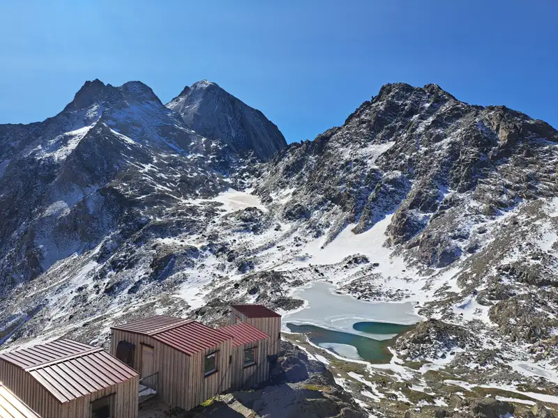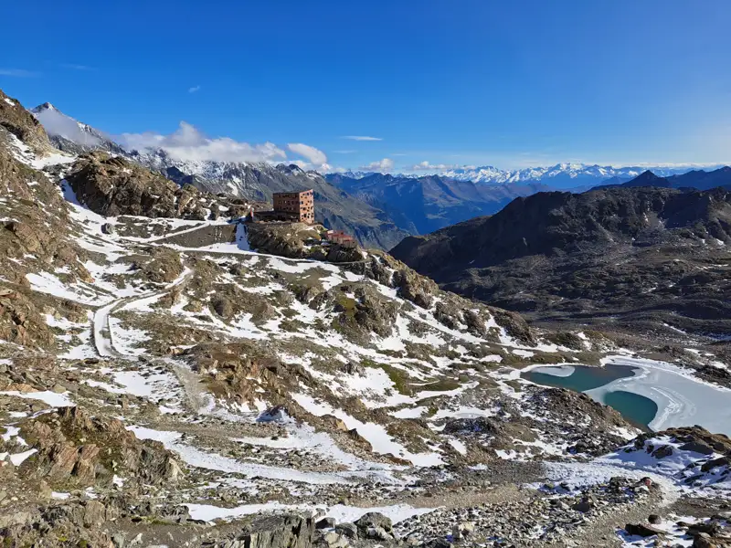 Am Nachmittag erreichen wir die Nasereit-Hütte, unser erstes Tagesziel, gemütlich gelegen inmitten der Bergwelt des Naturparks Texelgruppe. Ein perfekter Tour-Auftakt voller Weitblick, Natur und Südtiroler Hüttenflair.