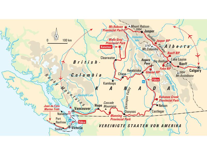 Reise-Nr. St 61AAWanderreise von den Rocky Mountains über den Wells Gray Provincial Park nach Vancouver Island