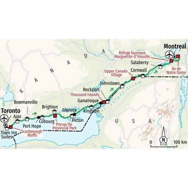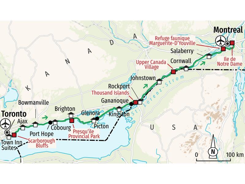 Trekkingrad ode E-Bike Reise entlang des Ontario Sees und des Sankt-Lorenz-Stroms von Toronto nach Montreal