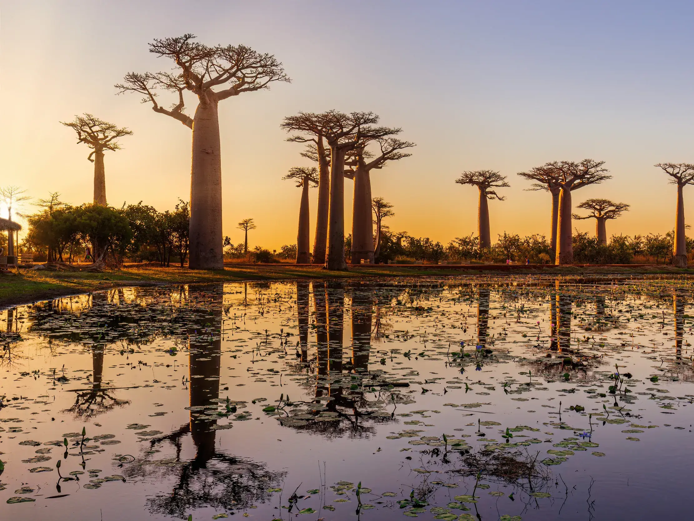 - Den Sonnenuntergang vor der Kulisse der Baobab-Allee von Morondava bewundern