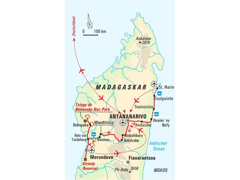 - Flug mit Ethiopian Airlines ab/bis Frankfurt via Addis Abeba nach Antananarivo(nach Verfügbarkeit; Aufpreis ist möglich)