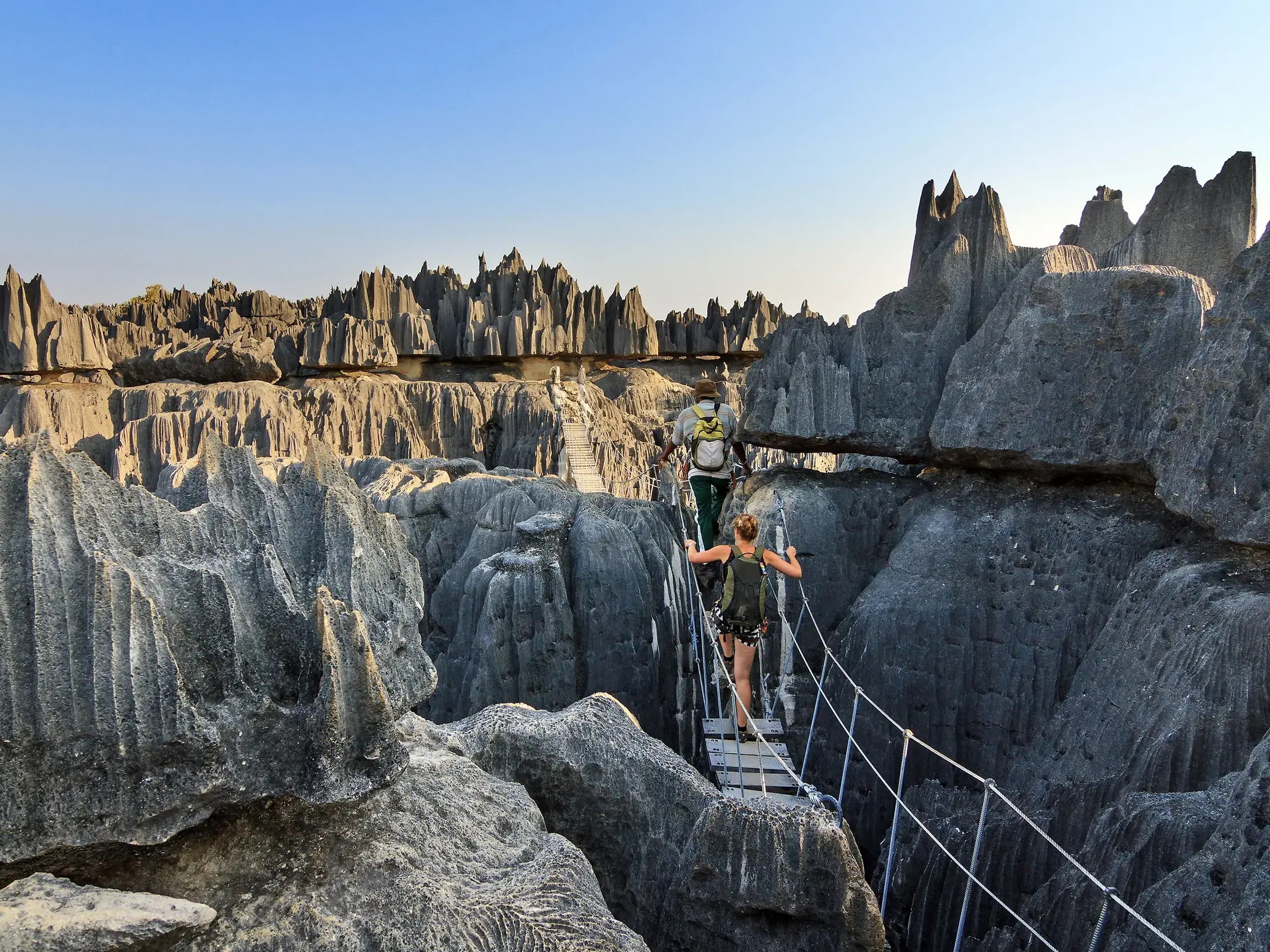 - Die gigantischen, grauen Steinformationen der Tsingys durchwandern