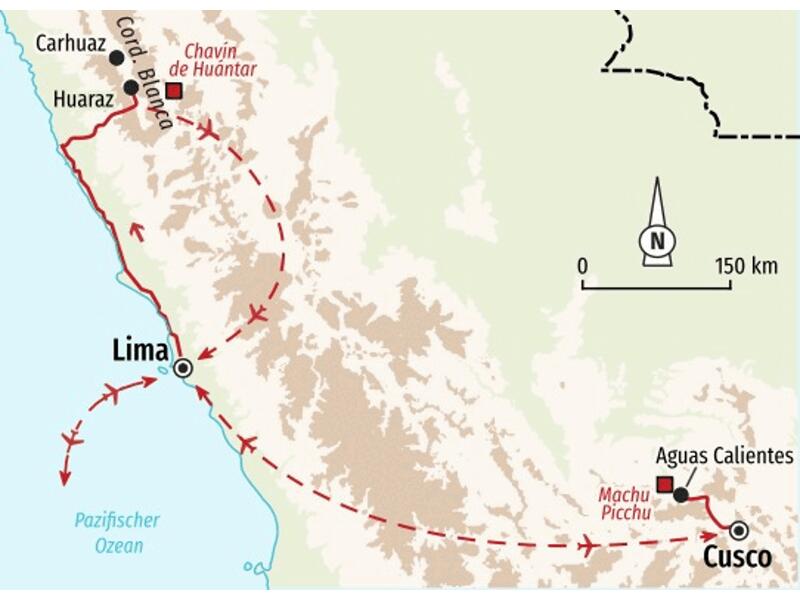 Der Fokus dieser Reise liegt auf der Verbindung von Nord- und Süd-Peru, eine Komposition zwischen Bergpanorama und Inka-Kulturstätten. Auf Tageswanderungen lernen wir den Norden mit seinen Bergseen und unglaublichem Bergpanorama auf die schneebedeckten Gipfel der Cordillera Blanca kennen. Im Süden wandern wir auf einem Teil des Inka Trails zum Sonnentor und blicken auf Machu Picchu, bevor wir am nächsten Tag die Inka-Kulturstätte erkunden.