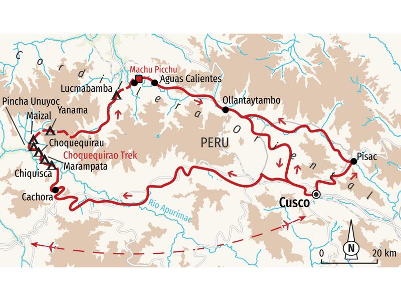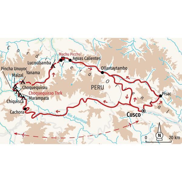 Der Fokus dieser Reise liegt auf dem 5-tägigen Trekking auf dem Choquequirao-Trek. Die Ruinenstadt Choquequirao, auch als "kleine Schwester Machu Picchus" bekannt, ist weit weniger besucht als ihr populäres Pendant. Daher haben wir Zeit den Zauber der Stätte ungestört zu genießen. Cusco, das heilige Tal rund um Ollantaytambo und Machu Picchu stehen ebenfalls auf dem Programm.