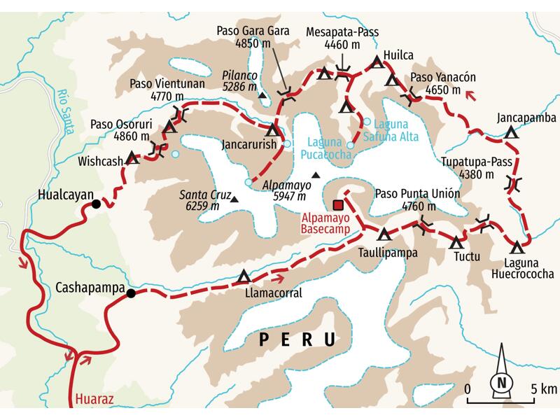 Der Fokus dieser Reise liegt auf einem anspruchsvollen Trekking in der Cordillera Blanca mit Umrundung des Alpamayos in Nord-Peru.