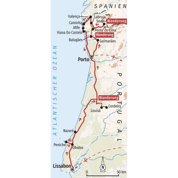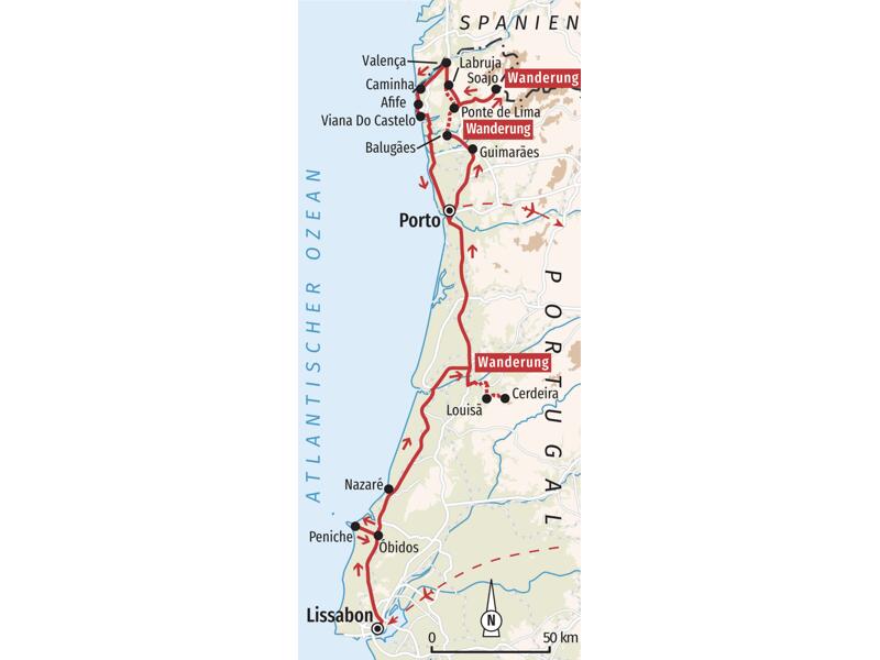 Der Fokus dieser Reise liegt auf der Erkundung Nordportugals. Dabei werden Etappen des Jakobswegs mit weiteren Wanderungen an der Küste sowie im Landesinneren ergänzt. An einigen Tagen werden die Wanderungen mit Besichtigungen und Verköstigungen kombiniert, so dass auch die Einblicke in die Kultur und Kulinarik, die Sitten und das Alltagsleben Portugals nicht zu kurz kommen.