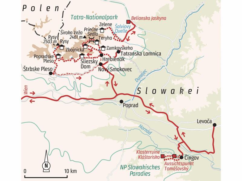 Reise-Nr. St 22ABStandort-Wanderreise mit Wanderungen im Nationalpark Hohe Tatra und im Slowakischen Paradies