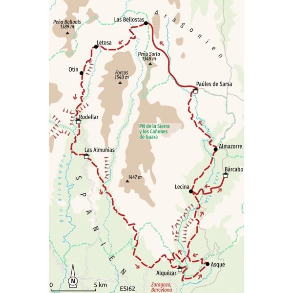 Steile Felswände, smaragdgrüne Flussläufe und das leise Rauschen des Río Verde – entdecken Sie die faszinierende Canyonlandschaft der Sierra de Guara in Aragonien, eines noch wenig bekannten Naturparadieses zu Füßen der Pyrenäen.Ihr Weg führt Sie durch einsame Schluchten, wilde Bergpässe, über alte Maultierpfade und vorbei an spektakulären Aussichtspunkten. Mit dem persönlichen Roadbook in der Hand wandern Sie von Ort zu Ort: Von der mittelalterlichen Stadt Alquézar geht es über Lecina und Paules bis nach Rodellar, einem charmanten Bergdorf inmitten wilder Natur. Immer wieder eröffnen sich weite Blicke über die zerklüftete Karstlandschaft, wo sich Adler kreisend in den Himmel schrauben. Ein besonderes Highlight: die Wanderung durch die imposante Schlucht des Río Verde – glasklares Wasser, schattige Uferwege und das Gefühl, ganz tief in die Natur einzutauchen.
