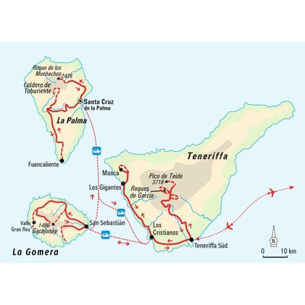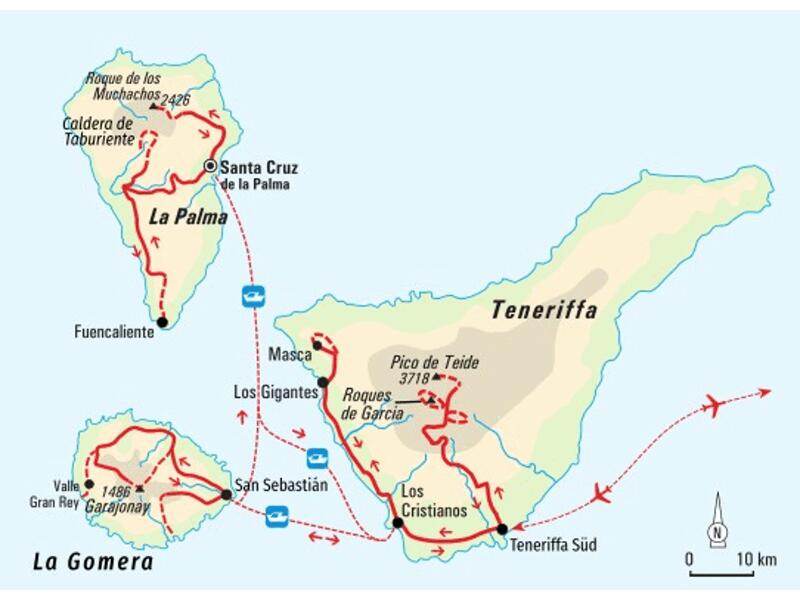 Der Fokus dieser Reise liegt auf abwechslungsreichen Berg- und Küstenwanderungen auf La Gomera, La Palma und Teneriffa, bei denen sowohl die Gemeinsamkeiten als auch die Gegensätze der Inseln deutlich werden. Dabei gibt es auch viele Einblicke in die Flora und Fauna und die Sitten und Gebräuche der Kanarischen Inseln.