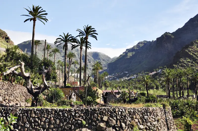 Wir fahren zum Aussichtspunkt Mirador del Morro de Agando, von wo aus wir beste Sicht auf das Wahrzeichen von La Gomera haben, den Felsen von Agando. Von dort steigen wir hinab in den Barranco de Santiago, eine spektakuläre Schlucht und passieren verschlafene Dörfer wie Benchijigua und Lo del Gato. Die Vegetation ändert sich spürbar, mit jedem Schritt ins Tal entdecken wir neue Pflanzen - Kameras griffbereit! Der Weg führt uns nach Pastrana, wo unser Bus auf uns wartet.