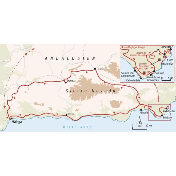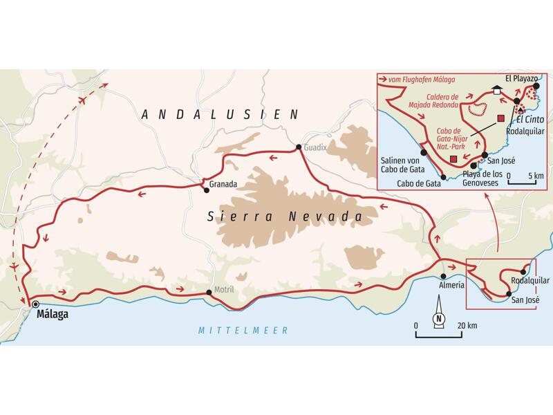 Der Fokus dieser Reise liegt auf ausgedehnten Wanderungen durch den sehr abgeschiedenen Naturpark Cabo de Gata im Süden Spaniens. Wir nehmen uns neben den Wanderungen viel Zeit für die Erkundung der Gesteins- und Pflanzenwelt. Während unserer Besuche in Málaga und Granada erhalten wir zudem auch Einblicke in die Kultur Andalusiens.
