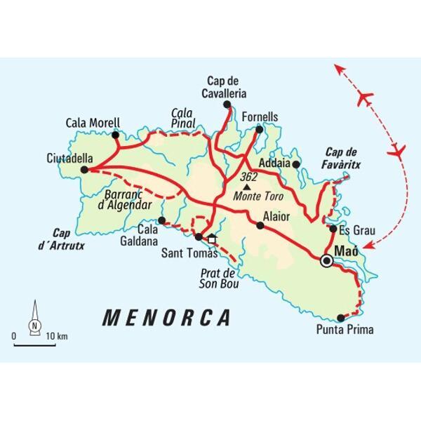 Wir bleiben heute im Süden der Insel und machen uns von unserer Unterkunft aus direkt auf den Weg. Die spektakuläre Steilküste ist nur zu Fuß oder per Boot erreichbar und wir folgen den steinigen Pfaden in die versteckten Buchten. Binigaus, Escorxada, Trebalúger und Mitjana – welche Bedeutung haben ihre Namen? Schließlich erreichen wir die Cala Galdana, wo der Bus auf uns wartet. Wir fahren zum Monte Toro (357 m), der höchsten Erhebung der Insel, werfen einen Blick in das Kloster und halten Ausschau nach der Nachbarinsel Mallorca, bevor es zurück zu unserer Unterkunft geht.