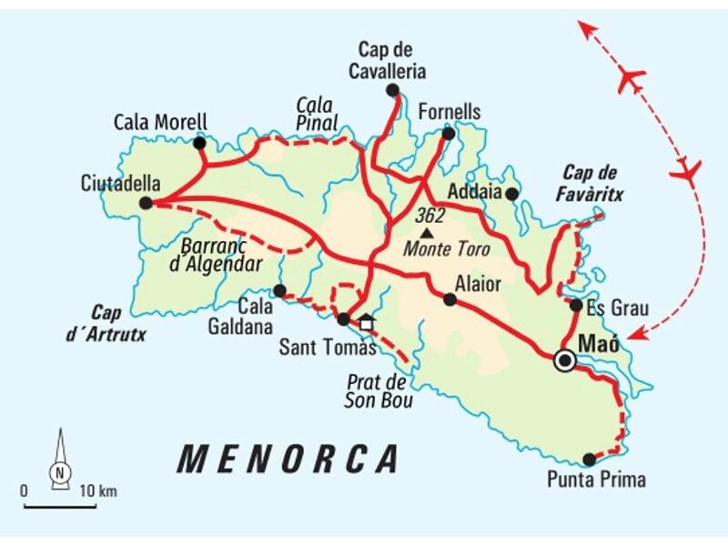 Flug nach Mahón. Wir werden am Flughafen von unserer Reiseleitung begrüßt und fahren zu unserer Unterkunft in Santo Tomás im Süden der Insel Menorca.