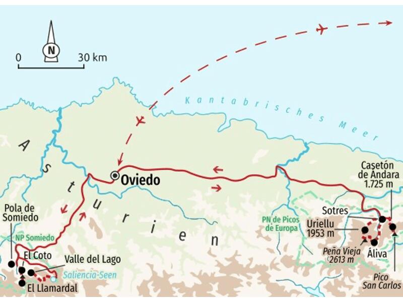 Der Fokus dieser Reise liegt auf ausgedehnten Wanderungen durch die Bergwelt Asturiens. Im Nationalpark Picos de Europa erwandern wir das imposante Kalkstein-Massiv und erfahren, wie die ländliche Bevölkerung im Einklang mit der Natur lebt. Zudem erkunden wir den Naturpark Somiedo, der mit seinen abgeschiedenen Tälern zu einem Rückzugsort für die letzten wilden Kantabrischen Braunbären geworden ist. Dadurch wird die andersartige Natur Nordspaniens kennengelernt, ebenso wie die Sitten und Gebräuche dieser Region.