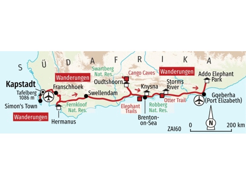 Reise-Nr. St 74AASelbstfahrer-Wanderreise entlang der Garden Route von