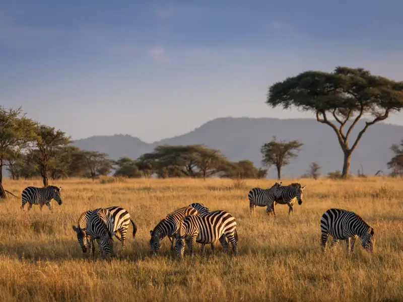 Im Reisepreis enthalten Lokaler, Englisch sprechender Safari Driver-Guide ab/bis Moshi Übernachtung 6 x in Mittelklassehotels und Lodges, davon 3 x in festinstallierten Safari-Zelten mit eigenem Bad 6 x Frühstück, 6 x Mittagessen, 5 x Abendessen Pirschfahrten im geländegängigen Safari-Fahrzeug Transfers und Eintrittsgebühren lt. Programm Reisekrankenschutz Nicht enthaltene Leistungen