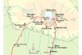 Der Pfad führt ständig ansteigend durch Hochmoorlandschaft, oft über Wurzelwerk, ist jedoch im Allgemeinen trockener und felsiger als am Vortag. Obwohl wir langsam gehen, gewinnen wir rasch an Höhe, da der Weg nun steiler wird. Die Büsche werden niedriger und es eröffnen sich Weitblicke in die weite Ebene und hinüber zum Mount Meru. Auf ca. 3.400 m erreichen wir eine Ebene, auf der wir Mittagspause machen. Ab hier finden sich kaum noch größere Pflanzen und allmählich erreichen wir die alpine Wüste. Wir laufen durch schwarzen Lava-Sand. Die gesamte Breite des Kibo ist von diesem Plateau aus zu sehen. Links die Lent Group, oberhalb der Gardner Glacier, die Western Breach bis zum Heim Glacier mit der Breach Wall. Gegen Westen öffnet sich das Plateau und der gesamte Kamm mit dem Klute Peak (3.955 m) ist sichtbar. Schließlich erreichen wir das Shira Cave Camp auf 3.750 m. Je nach Ankunft am Camp und Kraftreserven machen wir am Nachmittag noch eine Akklimatisierungswanderung zur Shira Höhle.