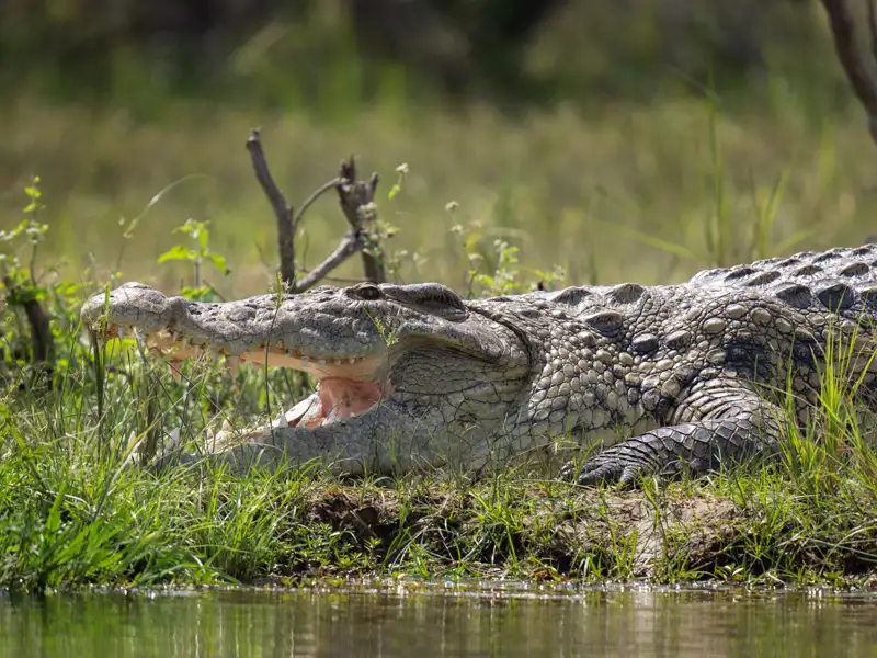 - Am Flussufer auf Beute lauernde Krokodile betrachten