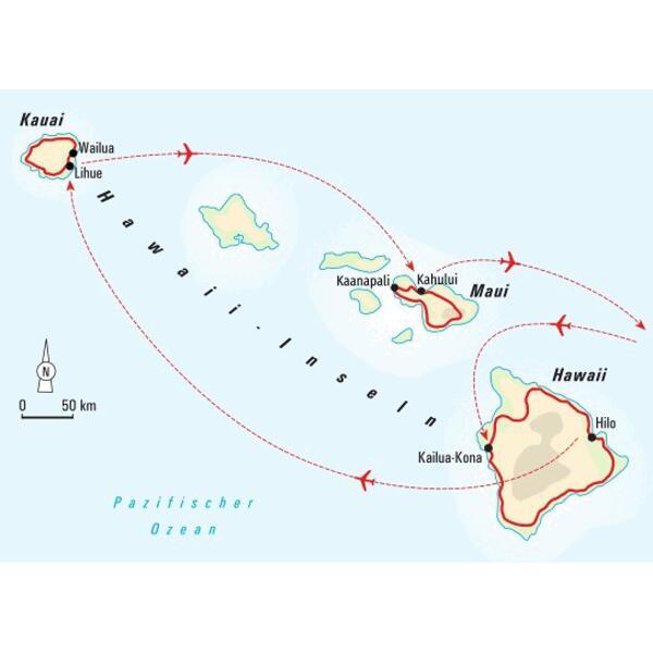 Aufgrund des Hawaii Triathlons ist die Reihenfolge des Termins 03.10. - 21.10.26 leicht angepasst. Wir beginnen auf der Insel Kauai und reisen von dort weiter nach Big Island und Maui.