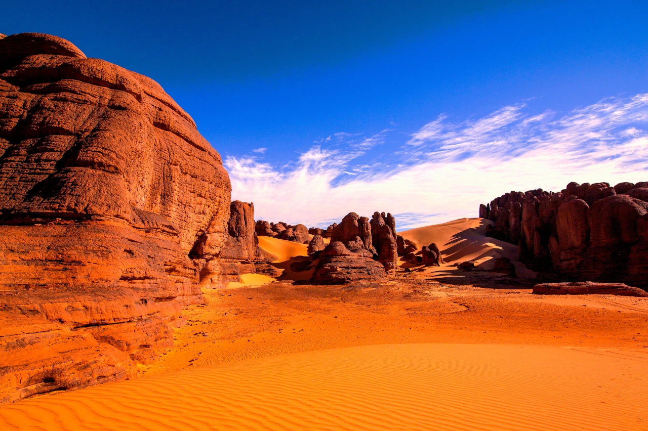 - Tassili N'Ajjer: Der Nationalpark im Süden Algeriens ist berühmt für seine beeindruckenden Felsformationen, Höhlenmalereien und einzigartige Wüstenlandschaft.