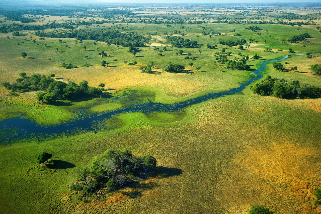 - Okavango Delta: Eines der größten Binnendeltas der Welt befindet sich im Nordwesten Botswanas. Es wird durch den Okavango-Fluss gespeist, der in die Kalahari-Wüste fließt und sich dort zu einem weitläufigen Netzwerk von Seen, Kanälen und Feuchtgebieten ausbreitet.