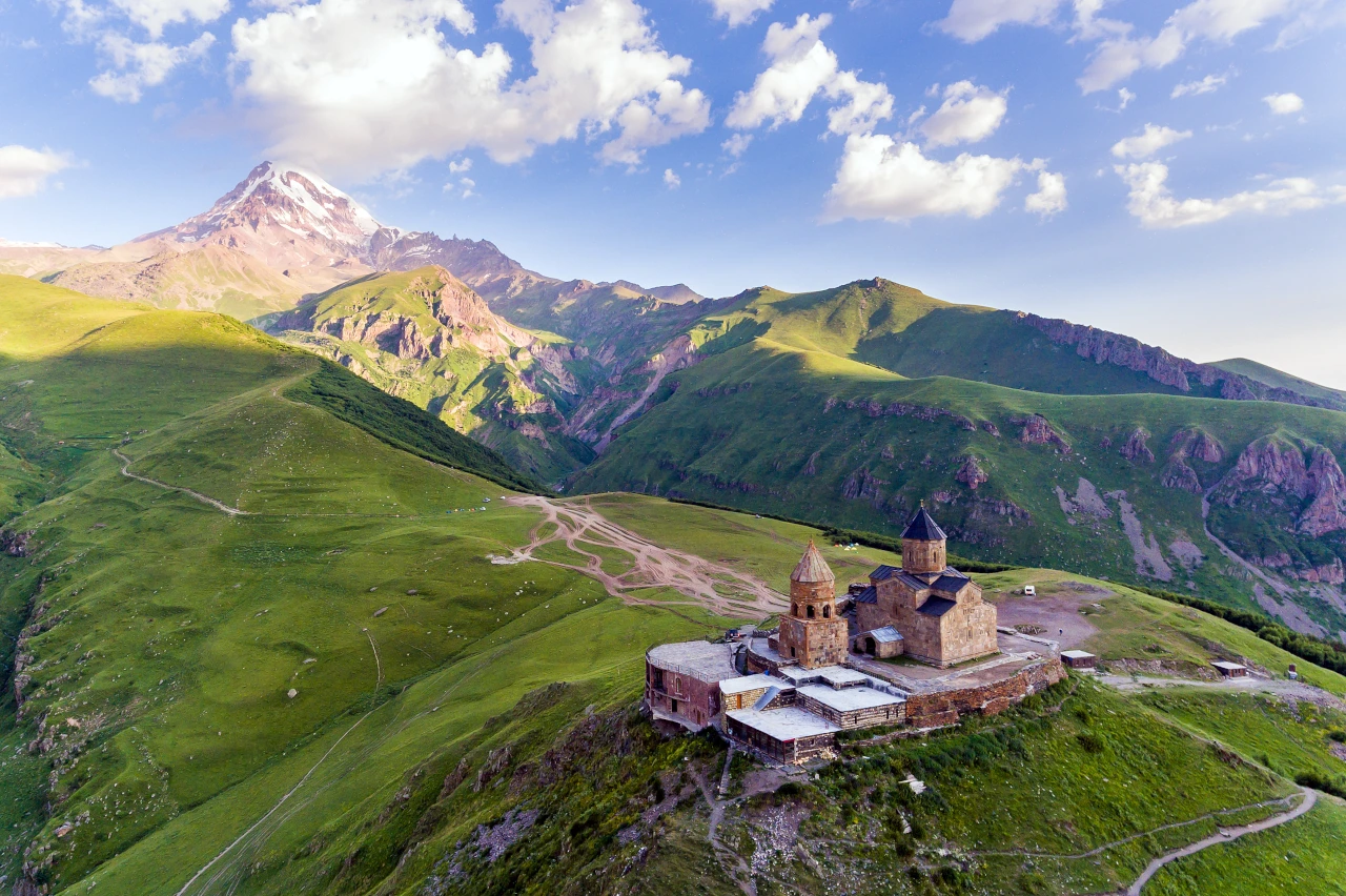 - Gergetier Dreifaltigkeitskirche: Die Dreifaltigkeitskirche, auch Kloster Gergetis Sameba genannt, ist in das wilde Bergland Georgiens eingebettet und liegt auf stolzen 2.000 Metern. Die Kuppelkirche ist mit georgischen Ornamenten verziert und bietet seit hunderten von Jahren einen herrlichen Panoramablick über die umliegenden Berge.