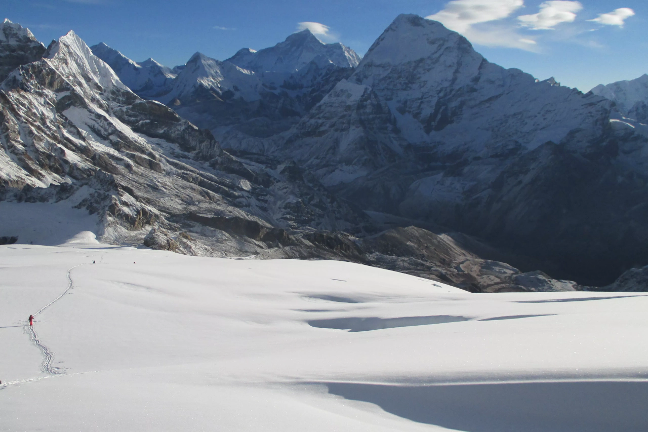Wer einmal im Leben auf einem Sechstausender Gipfel stehen möchte, für den ist der Mera Peak in Nepal das perfekte Ziel. Diese Trekkingroute der Mera Peak Besteigung war bis vor einigen Jahres nur als reines Zelttrekking möglich. Doch mittlerweile können Sie etwas komfortabler in einfachen Lodges übernachten. Die Trekkingroute führt über Pangom bis nach Khare, der letzten Siedlung im Tal auf 4.950 Metern Höhe. Anschließend trekken Sie über den 5.415 Meter hohen Pass Mera La bis zum Zeltlager des Mera Peak. Am nächsten Tag brechen Sie bereits in den frühen Morgenstunden auf zur Gipfeletappe auf den Mera Peak. Der Aufstieg dauert ca. acht bis neun Stunden. Oben angekommen genießen Sie das einmalige 360-Grad-Panorama auf die umliegenden Berge der Everest-Region mit ihren vielen Siebentausendern und den vier Achttausendern Mount Everest, Lhotse, Makalu und Cho Oyu. Dieser Ausblick entschädigt mit Sicherheit für alle Mühen der Besteigung.