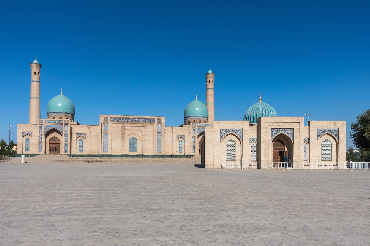 - Khast-Imam-Komplex: Der Komplex ist das religiöse Zentrum der Hauptstadt Taschkent. Die Gruppierung von Gebäuden beinhaltet die Barak-Chan-Medrese (Islamschule) aus dem 16. Jahrhundert, die Teleshayakh Moschee, die eine wichtige religiöse Bibliothek beherbergt, und das Kaffal-Schaschi-Mausoleum. Letzteres stammt aus dem 16. Jahrhundert und wurde über dem Grab von Abubekr Mukhammad Kaffal-Shashi erbaut, dem Imam des Al-Bukhari Instituts.